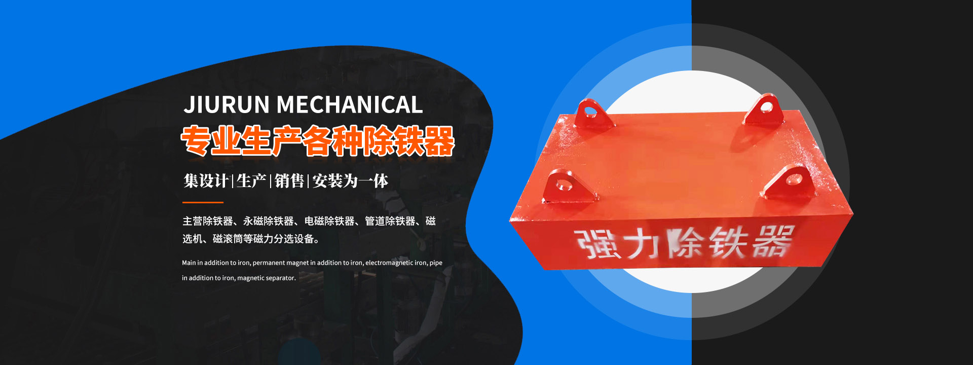 产品有电磁91抖音ios轻量版,管道自卸91抖音ios轻量版,电磁磁滚筒,金属探测仪,磁选机,脱磁器,盘式真空过滤机,布袋除尘器等。